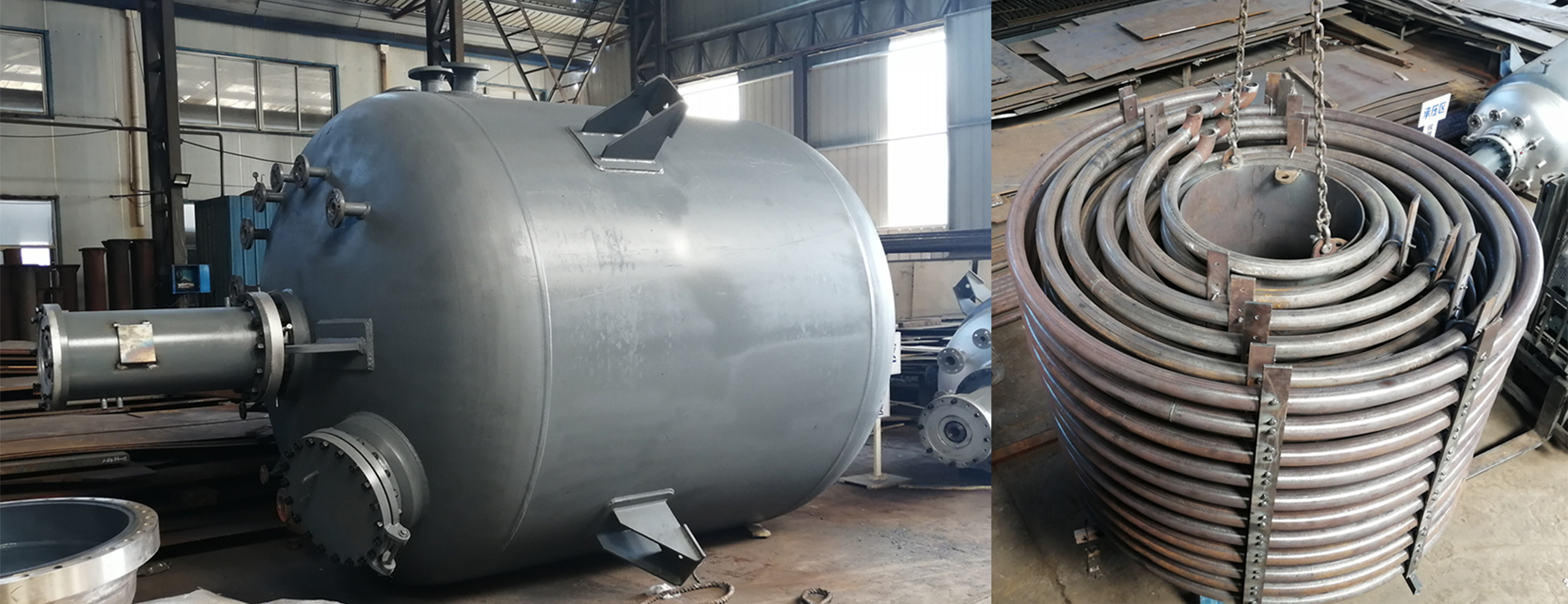 加氫反應(yīng)分為吸熱反應(yīng)和放熱反應(yīng),有些加氫反應(yīng)在反應(yīng)過(guò)程中會(huì)釋放大量的熱能。為了生產(chǎn)安全,并及時(shí)降低釜內(nèi)溫度,有些工藝要求釜內(nèi)配大面積的冷卻盤(pán)管。此時(shí)單層冷卻盤(pán)管無(wú)法滿足工藝要求,需要雙層或更多層盤(pán)管有效及時(shí)降溫。正威機(jī)械生產(chǎn)的6層盤(pán)管內(nèi)配吸氫攪拌槳,加…